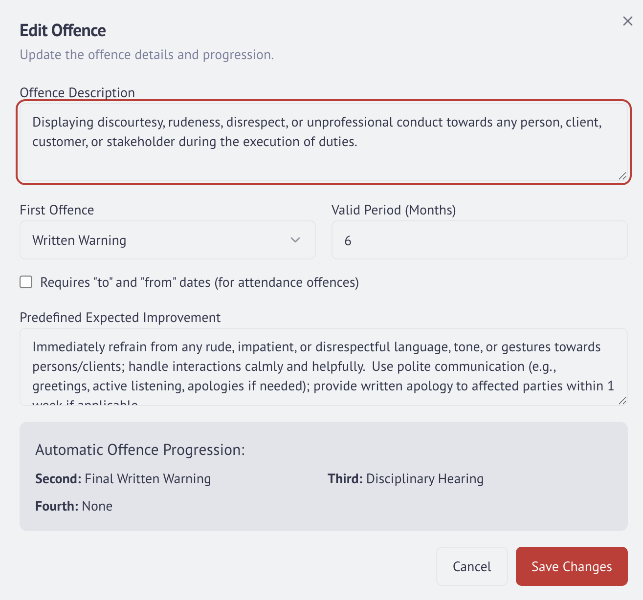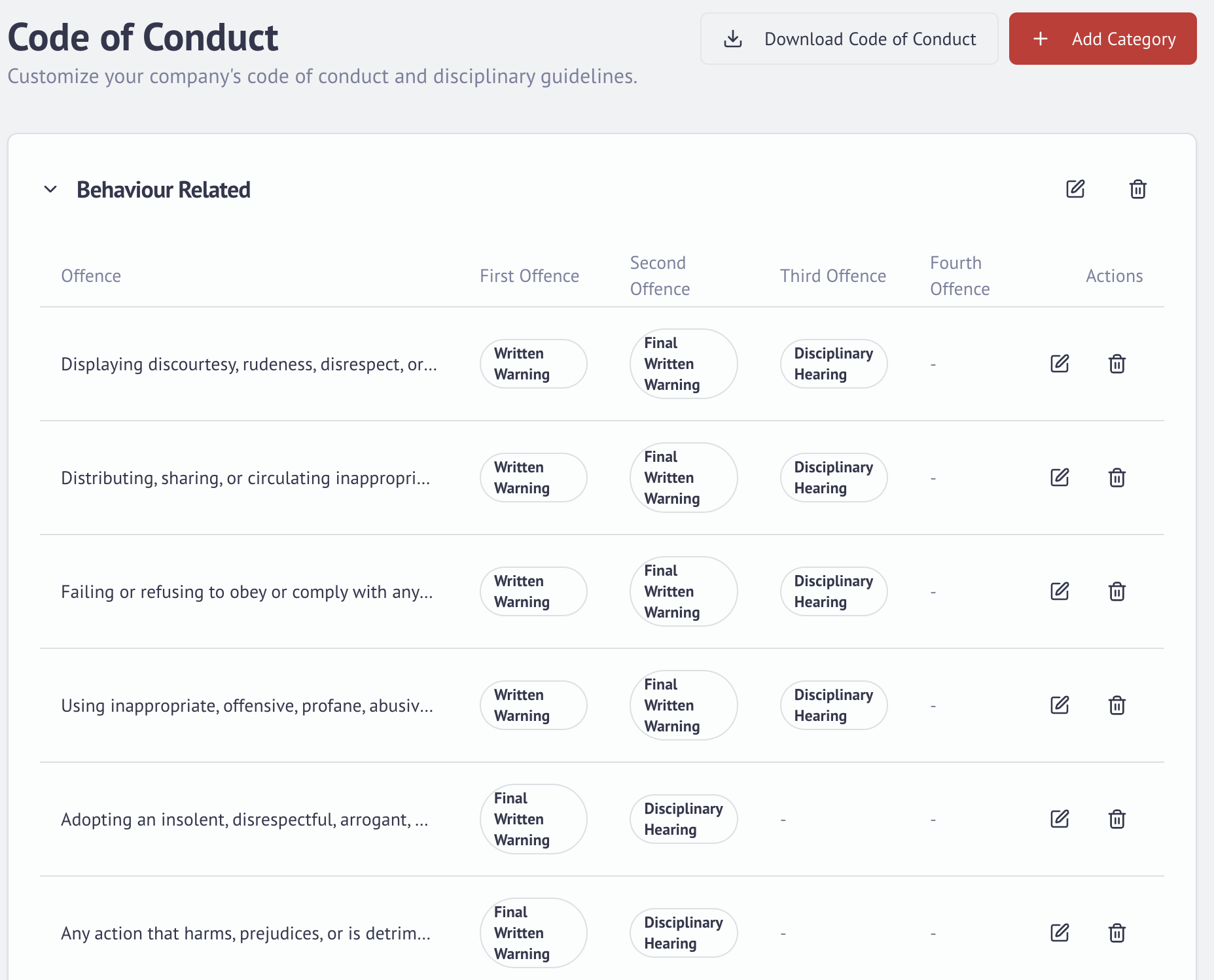 Warning Junkie and SJG Enterprises Pty Ltd cannot be held liable for any labour cases that arise against the user. Users are strongly advised to consult with qualified legal professionals and HR specialists before taking any disciplinary actions.